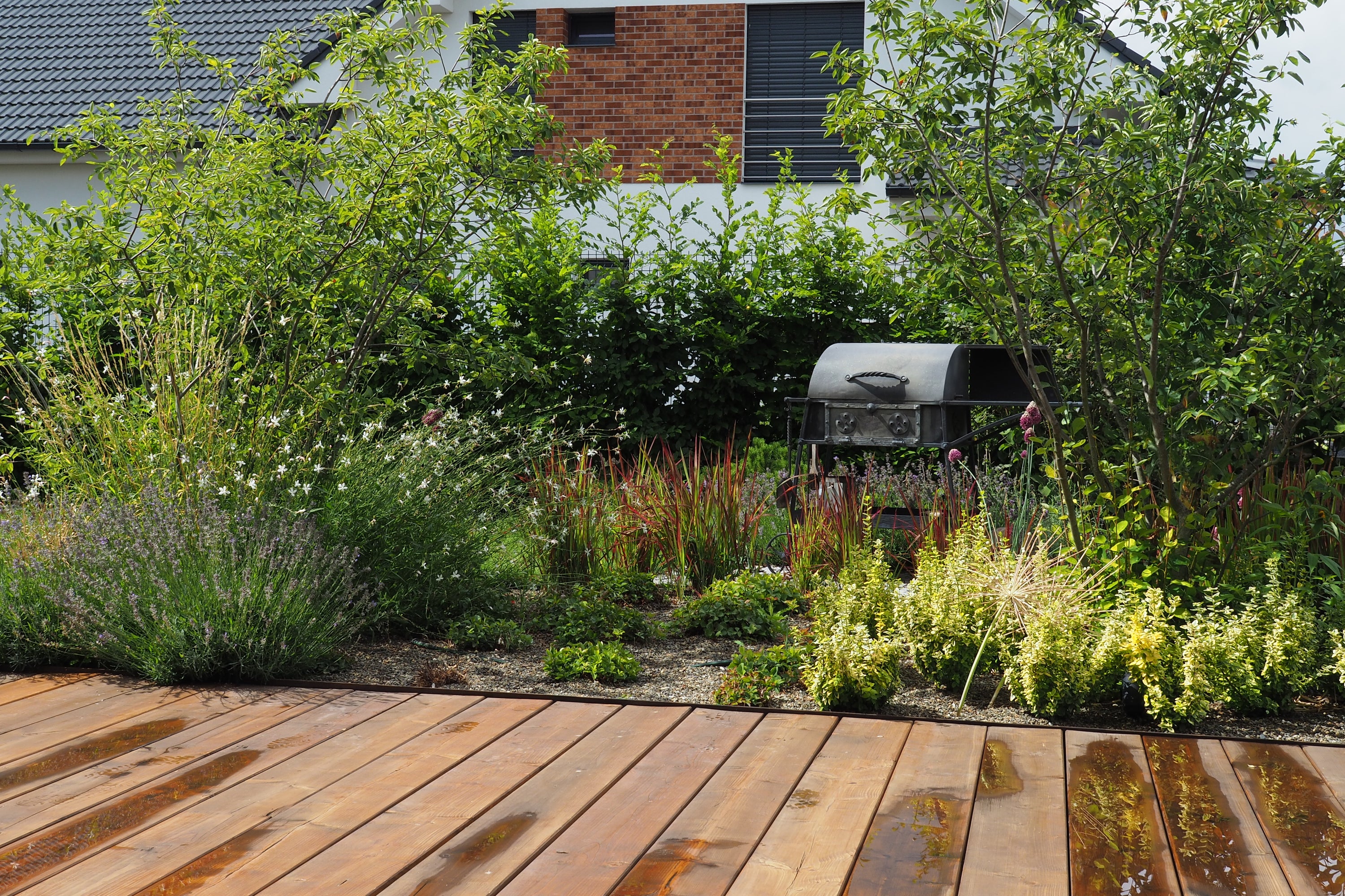 Živý plot vytváří krásnou zelenou stěnu, která poskytne dostatek soukromí, ale zároveň příliš neoddělí zahradu od okolního prostředí. Stromy v zahradě zajistí stín, který v letních parnech přijde vhod. Krmítko a budka bude přístřeším pro různé ptačí druhy, a zahrada tak bude ještě o něco živější.